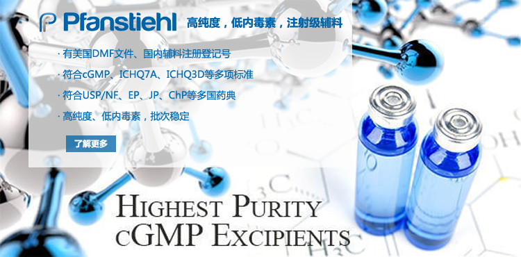 “熱烈祝賀Pfanstiehl的注射級甘氨酸Glycine(G-140)喜獲CDE登記號F20250000403, 這是Pfanstiehl產品獲得的第18個CDE登記號!”甘氨酸在醫藥輔料制劑中應用廣泛,, 可作為緩沖劑,增溶劑,穩定劑等,具有諸多優勢。Pfanstiehl秉承一貫高品質理念,為滿足全球生物制藥行業對于高品質甘氨酸的需求,隆重推出的注射級甘氨酸Glycine (G-140), 具有超高純度,超低內毒素,超低金屬殘留的特點,單獨檢測29種金屬離子,并且新增DNA,RNA,DNA酶,RNA酶和脂肪酶,亞硝酸鹽等多項質量指標的檢測,符合多國藥典規定(USP, EP, BP, JPE, ChP),可用于生物治療性藥物和疫苗的生產。產品信息:· 產品名稱:Glycine, High Purity, Low Endotoxin, Low Metals, USP, EP, BP, JPE, ChP (G-140)· 中文名稱:甘氨酸· 分子式:C2H5NO2· 分子量:75.07 g / mol· CAS號:56-40-6· 產品貨號:G-140產品特點: · 超高純度,超低內毒素,超低微生物含量,超低金屬雜質殘留· 質量指標新增DNA,RNA,DNA酶,RNA酶,脂肪酶和亞硝酸鹽檢測· 符合多國藥典:USP, EP, BP, JPE, ChP· 符合ICH Q3D標準· 符合GMP標準· 已獲DMF和CDE登記號 產品應用:· 緩沖劑· 穩定劑· 增溶劑如果您對Pfanstiehl注射級別Glycine G-140感興趣,歡迎聯系Pfanstiehl 中國區代理商北京西美杰科技有限公司獲得如下詳細的產品概況說明文件和測試樣品。Pfanstiehl Inc.最新產品系列如下,歡迎聯系北京西美杰科技有限公司獲取100g裝免費樣品。北京西美杰科技有限公司為Pfanstiehl中國代理,為客戶提供完善的技術支持與售后服務。歡迎撥打西美杰客服電話400-050-4006或者登陸網站www_xmjsci_com.qqhrys.mobi了解更多信息。 更多>西美杰介紹
